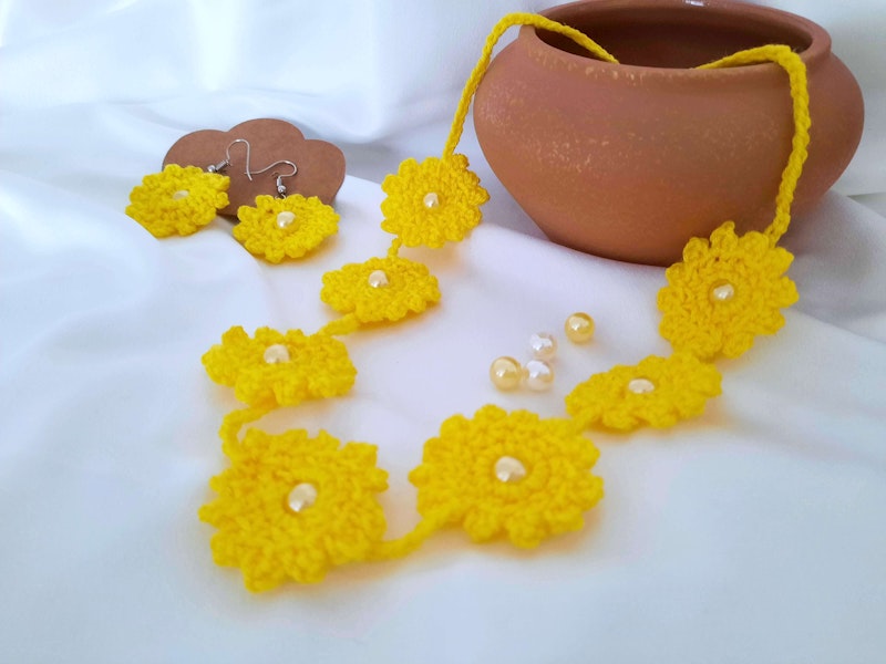 It'ѕ tіmе tо be еlеgаnt wіth this short Paradise Yellow and yellow pearls necklace flower.